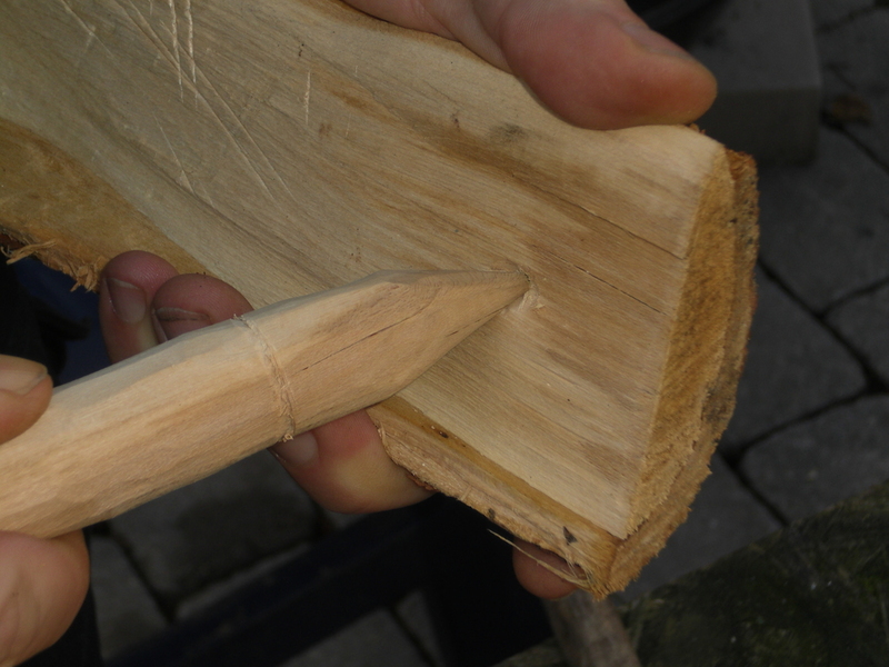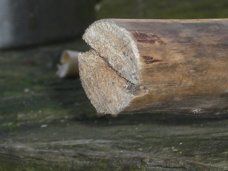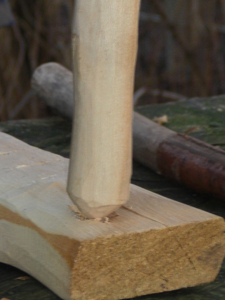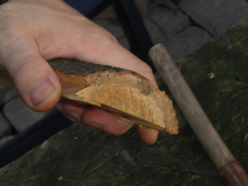 Ist einfach ein Rest, der von dem Holzscheit übrig geblieben ist. Immer schön verwenden was man zur Hand hat... :) Sollte gut, sogar sehr gut in die Hand passen, so das man es bequem halten kann. |