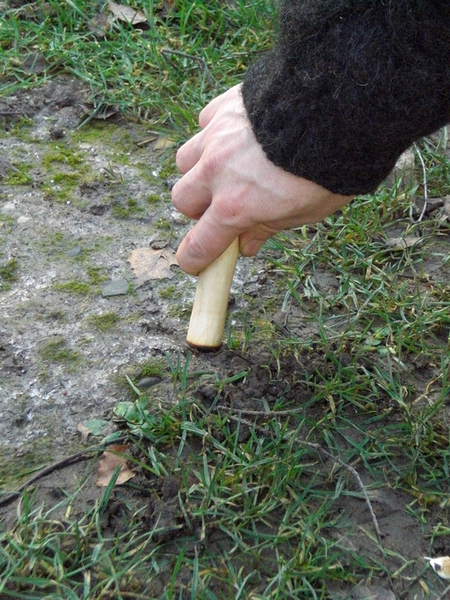 | Da gibt es aber eine simple Lösung zu! Die Spindel mit der stumpfen Seite einfach durch den Dreck ziehen! |