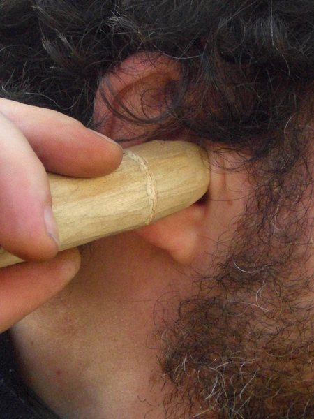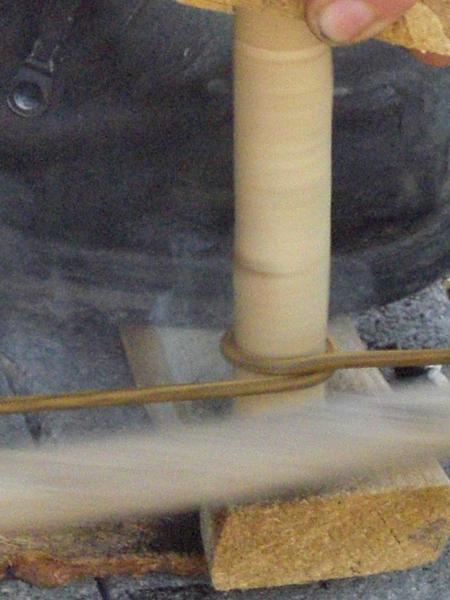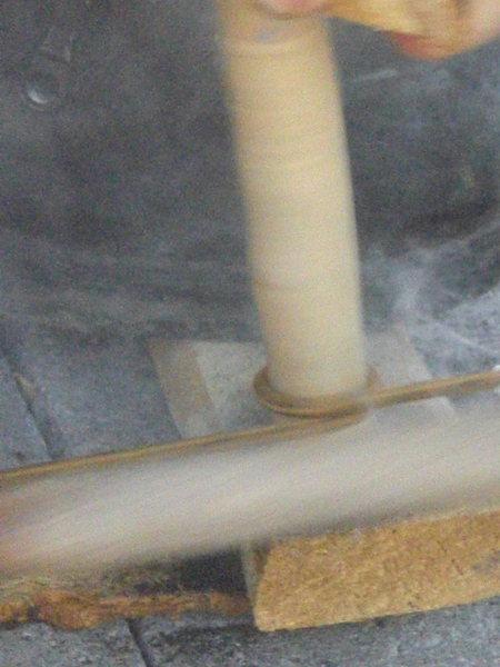 | Die angespitzte Spindel muss natürlich auch wiede geschmiert werden... Und ob man es glauben mag oder nicht, aber Ohrenschmalz ist ein super Schmiermittel! |